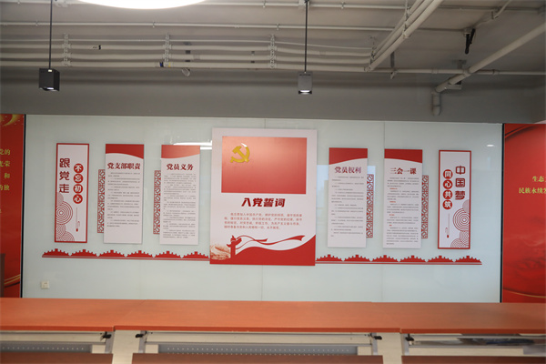 本著“統(tǒng)籌規(guī)劃、綜合利用、功能完善、節(jié)約成本、一室多用”的原則,在原27層培訓(xùn)室的基礎(chǔ)上進(jìn)行了改造提升,科學(xué)規(guī)劃布置了黨旗、入黨誓詞、黨員義務(wù)、黨員權(quán)利、“黨組織架構(gòu)圖”等基礎(chǔ)內(nèi)容。還配備了黨建書柜,設(shè)置了支部展示窗口,增設(shè)了精神文明創(chuàng)建展板,確保了黨員學(xué)習(xí)教育有陣地、交流互動有平臺、形象展示有載體,有力提升了集團(tuán)總部黨建工作標(biāo)準(zhǔn)化、規(guī)范化水平。